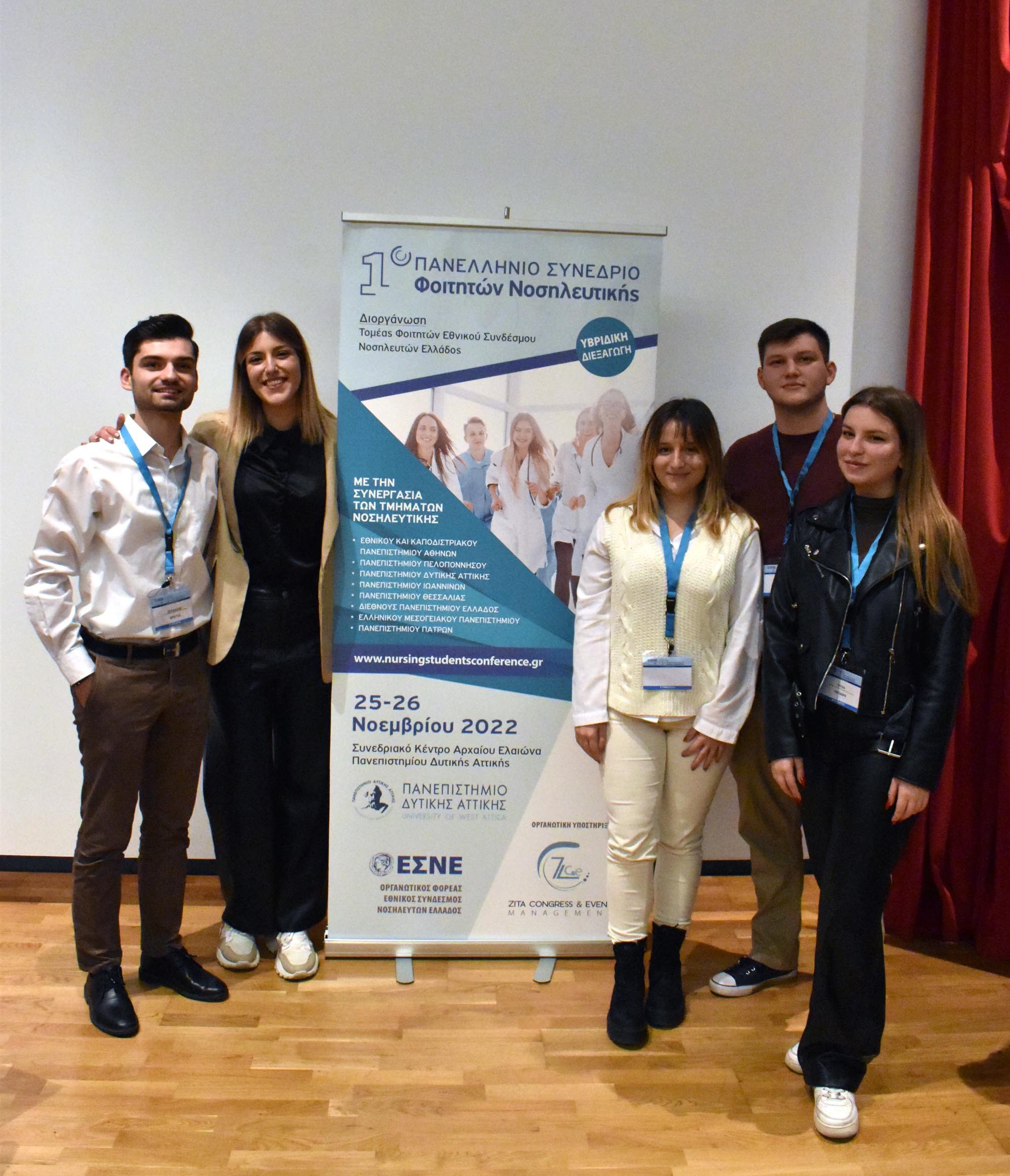 To 1ο Πανελλήνιο Συνέδριο Φοιτητών Νοσηλευτικής διοργανώθηκε από τον Τομέα Φοιτητών Νοσηλευτικής του Εθνικού Συνδέσμου Νοσηλευτών Ελλάδας το διήμερο 25 και 26 Νοεμβρίου 2022 στο αμφιθέατρο του Πανεπιστημίου Δυτικής Αττικής. Η οργάνωση του 1ου Συνεδρίου Φοιτητών Νοσηλευτικής αποτελεί ορόσημο για τη Νοσηλευτική Φοιτητική Οικογένεια και σηματοδοτεί επίσημα, την έναρξη ενός επιστημονικού διαλόγου μεταξύ των συναδέλφων φοιτητών. Μέσα από τη θεματολογία του Συνεδρίου αναδείχτηκαν νέες γνώσεις, νέες προοπτικές, ερευνητικές πρωτοβουλίες και κλινικές δεξιότητες. Όλα τα προηγούμενα θα ενισχύσουν την μελλοντική επαγγελματική υπόσταση του νοσηλευτή και την αναγκαιότητα της αντιμετώπισης των ιδιαίτερων αναγκών του κάθε αρρώστου. Πιστεύουμε ότι το 1ο Πανελλήνιο Συνέδριο Φοιτητών Νοσηλευτικής απετέλεσε μια μοναδική ευκαιρία για συνάντηση και ανταλλαγή γνώσεων, εμπειριών και επιστημονικών ανησυχιών.